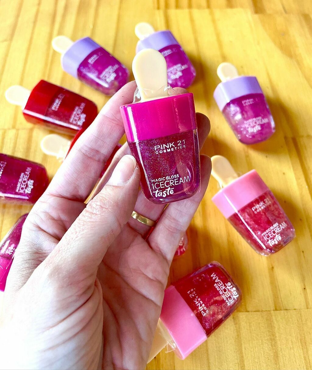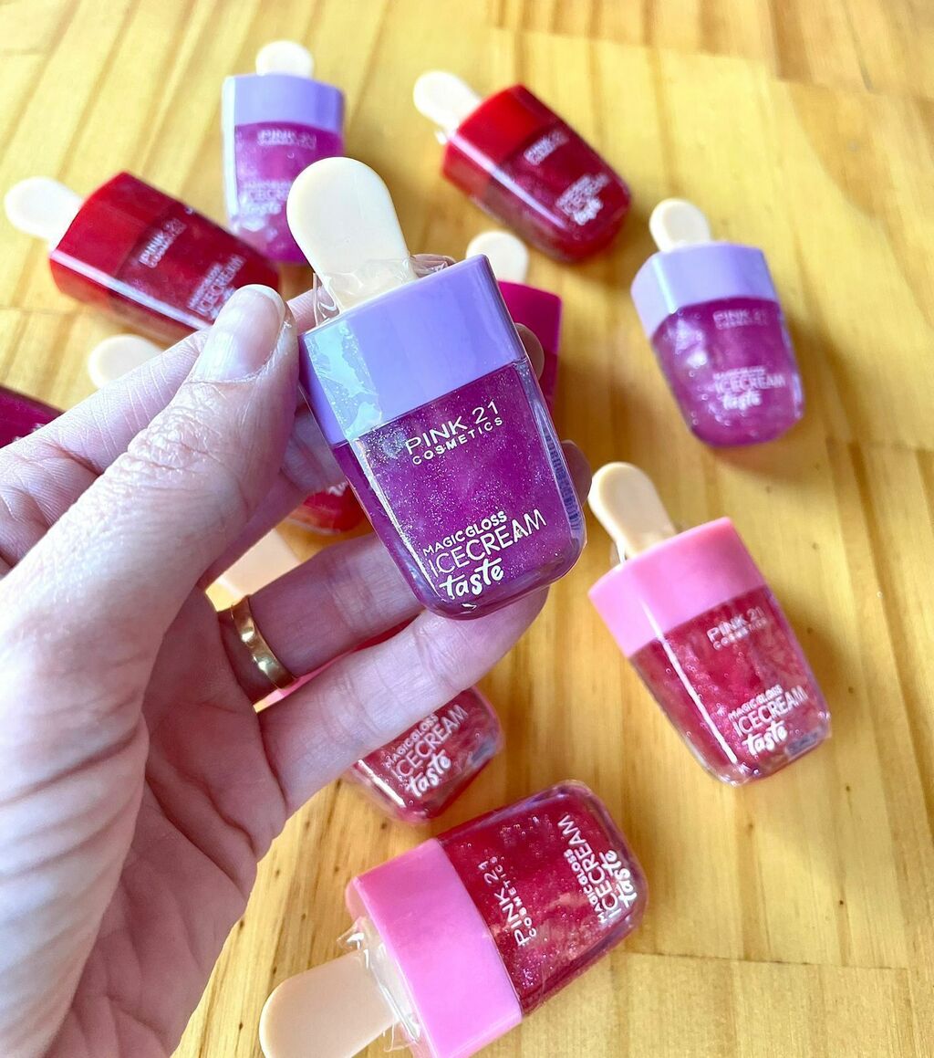 - O Gloss Magic Icecream Taste - Pink 21 proporciona hidratação intensa, brilho encantador e um delicioso sabor de sorvete aos lábios.